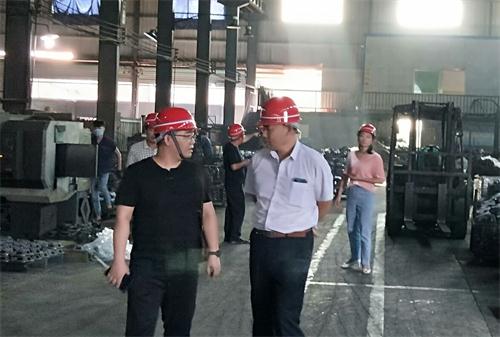 湘電集團(tuán)的黃經(jīng)理在福順李總的陪同下參觀考察機(jī)加工車間